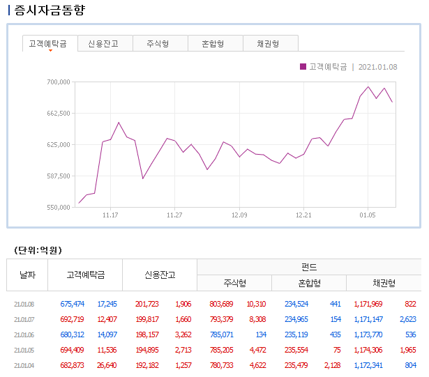 이상으로 네이버와 다음에서 고객예탁금 조회 하는 방법을 알아봤습니다. 고객예탁금은 점점 늘어나는 추세에 있으며 70조원을 넘어서 계속해서 상승하게 된다면 개미들의 매수세는 더욱 거세질 전망이기 때문에 주식을 하는 분들이라면 고객예탁금 추이에 항상 관심을 가져두셔야 합니다.