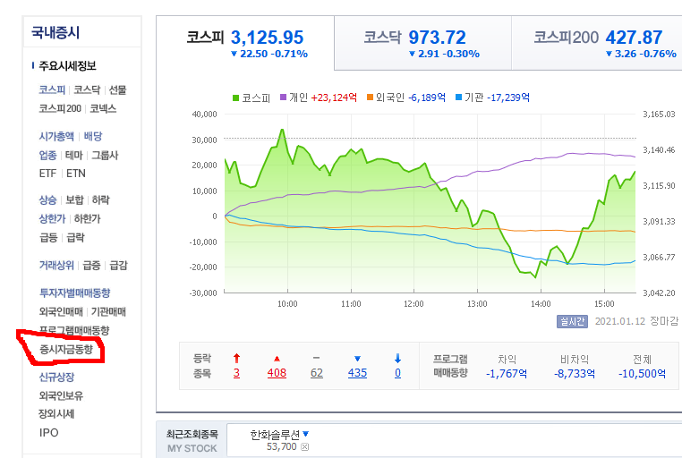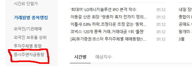 그리고 왼쪽 카테고리에서 증시자금동향을 눌러줍니다.