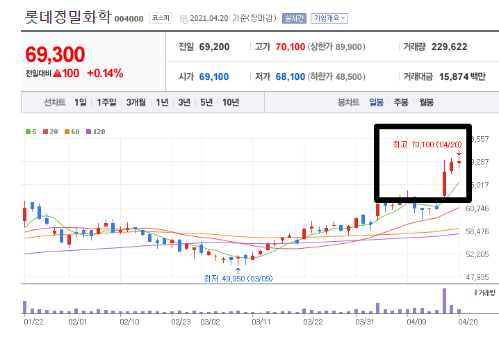 특히 지지부진 하던 롯데정밀화학같은 무거운 종목이 무려 12% 가까이 치솟으면서.. 원자재 가격 상승의 수혜를 화학주가 입었었습니다.