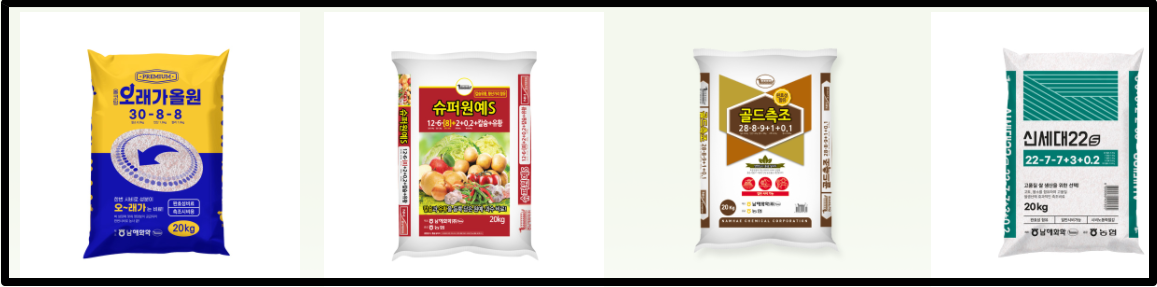 이렇게 다양한 비료들을 생산 및 판매 하고 있으며, 비료 관련으로는 국내에서 가장 큰 기업이라고 해도 과언이 아닐 정도죠.