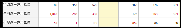 현금흐름 역시 매우 탄탄한 흐름을 보여주고 있습니다. 2020년 들어서 영업활동으로 상당히 좋은 수익을 낸 것 뿐만 아니라 투자와 재무활동 역시 더욱 더 좋아지는 흐름을 보여주고 있네요.