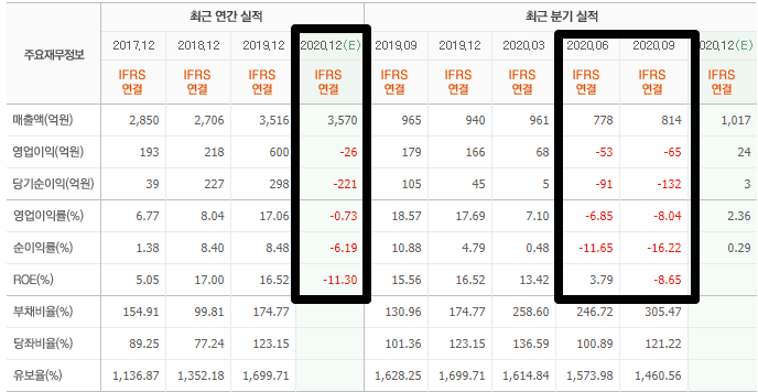 네패스는 원래 실적이 꽤 잘 나와주고 ROE도 두 자리수도 나오는 기업입니다. 근데 문제는 2020년에 코로나19 영향으로 인한 가동률 하락 및 대규모 설비투자에 따른 고정비 증가/ 종속회사의 파생상품 평가손실로 인한 당기순이익이 크게 감소하면서 적자전환이 되어버렸죠.