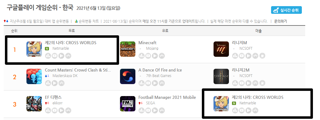 물론 신작오픈빨 (?) 이라는게 있지만 구글플레이 순위차트에서 상위권에 올라와있는 제2의 나라 입니다. 사실 PC게임 같은 경우에는 롤,배틀그라운드,피파온라인4 이렇게 3개 게임 점유율이 압도적으로 높기 때문에 이들을 뚫어내긴 어렵죠. 그래서 모바일게임에 집중하는게 매우 현명한 판단이라고 보여집니다.