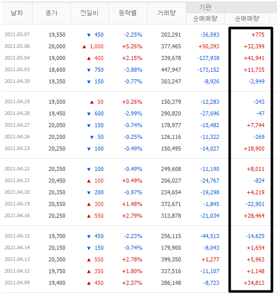 외국인의 매수가 꽤 들어오고 있긴 하지만 기관에서 계속 순매도를 때리고 있어서 수급으로는 그렇게 좋지 않은 상황입니다. 다만 이 매도 추세가 언제까지 지속될지는 지켜봐야겠죠.