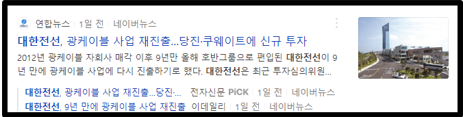 당진과 쿠웨이트에 9년만에 광케이블 사업으로 재진출 한 대한전선인데요. 상당히 긴 횡보 이후에 오랜만에 주가가 꽤 올라줬기 때문에 주주들 입장에선 상당히 다행인 반등이었는데요.