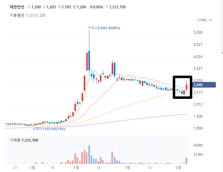 안녕하세요 오늘은 상당히 최근에 좋은 상승을 보여준 대한전선 주가를 분석해보려고 합니다.