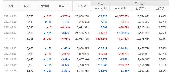 거기에 오늘 외국인이 엄청난 물량을 사갔습니다. 아무래도 수에즈 운하가 막힌 것 때문에 일수도 있지만 저는 단기적인 이슈만 보지 않고 조금 길게 보고 매수를 진행했습니다.