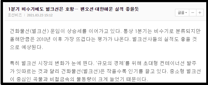 여러분들도 해운주 잘 공부해보셔서 좋은 종목 선택하시길 바랍니다.