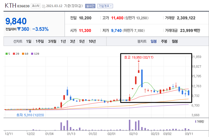 자 그리고 쿠팡 관련 대장주였던 KTH의 그래프를 보면 낙폭이 매우 무섭죠? 2만원에서 투매가 나오면서 결국 반토막 나버렸습니다. 아마 만원초반대에서 물리신 분들도 상당히 많을 것 같습니다.