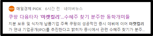 쿠팡 관련주가 매우 떠들썩 했던 것처럼 마켓컬리가 상장한다는 뉴스가 뜨자마자 관련주들이 또 반응 하더라구요. 하지만 쿠팡 관련주는 매우 알려져 있는 상태였지만 현재 마켓컬리 관련주는 그만큼 알려져 있지 않은데요