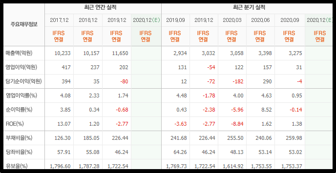 팜스코 역시 실적이 우하향하는 모습을 보여주고 있습니다. 원래 팜스코는 돼지열병 테마주라서 돼지열병 이슈가 터질때마다 급등이 나왔던 종목이라 어떻게보면 실적으로 인한 움직임보다는 테마주의 힘이 강한 종목입니다. 이번에 마켓컬리 상장 이슈가 소멸되면 하락하는게 뻔한 종목이죠.. ㅠ