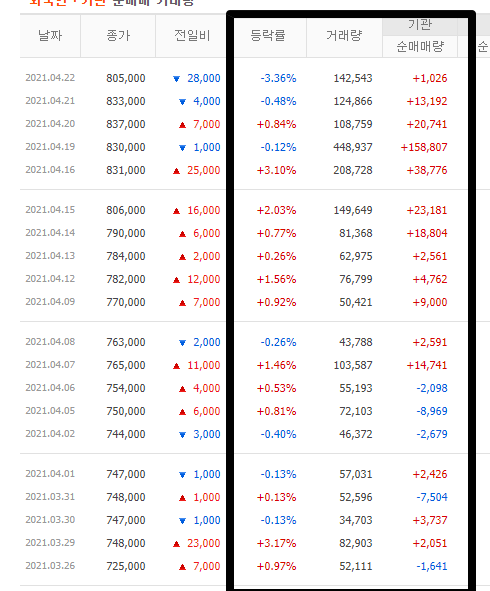 딱 저 가격대 부근인데.. 아마 다른 개미들은 삼성바이오로직스에 관심도 없었을 겁니다. 주가가 계속 떨어지고 있었기 때문이죠. 하지만 기관과 외국인들은 저때 오히려 매수를 계속 받았더군요..