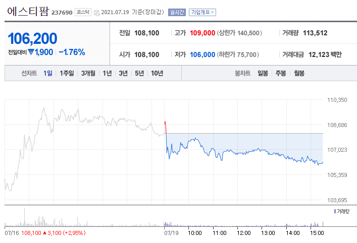 첫번째 종목은 에스티팜 입니다. 아마 아는 분들은 이미 다 알고 있는 대표적인 모더나 관련주이자 대장주 입니다.