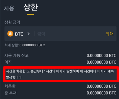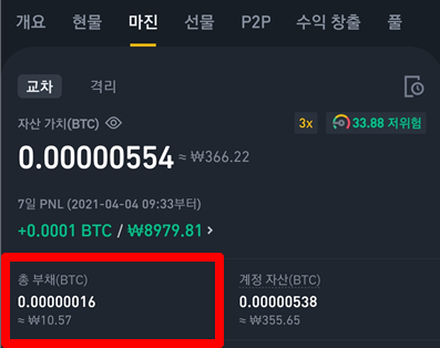 나중에 확인해보면 자신도 모르는 사이 부채를 사용해서 매매를 해버린 셈이 되죠. 이 부채는 빨리 상환을 하지 않으면 1시간 이후부터 계속 이자가 발생하게 됩니다. 물론 이 빚을 안갚게 되면 어떻게 되는지는 알려진 바가 없지만..