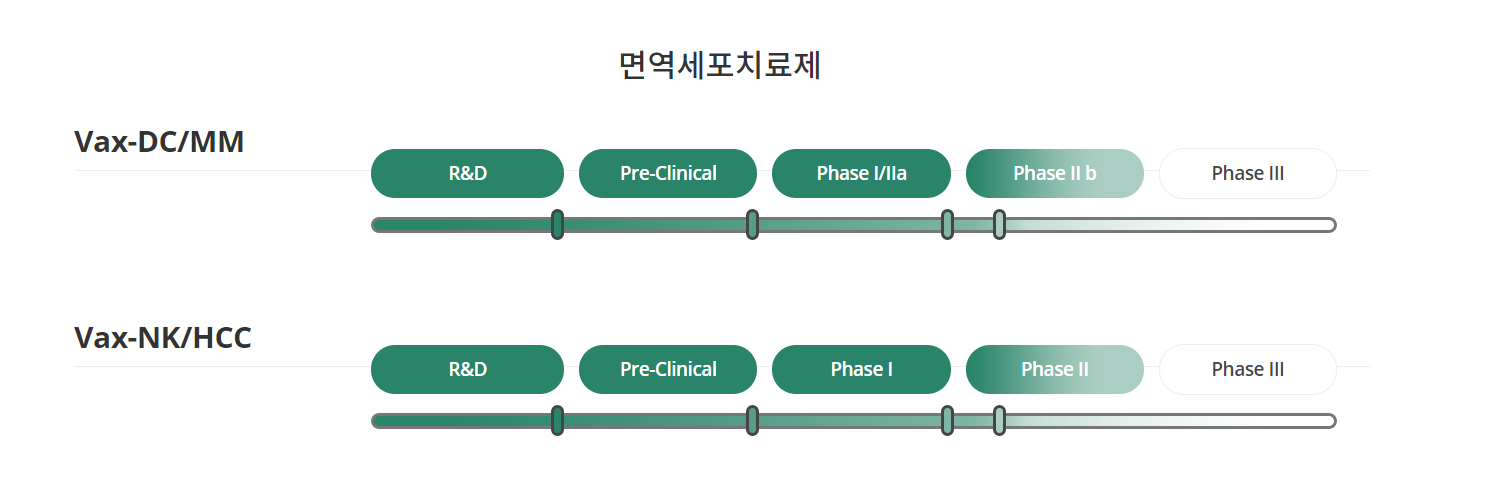박셀바이오는 특히 면역세포치료제에 중점을 두고 연구와 개발을 진행중에 있으며, 저 DC/MM과 NK/HCC 두 제품을 상당히 중요하게 생각하고 있는 것 같습니다.