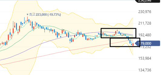삼성전기는 주봉차트 기준으로 약 16만원 후반대에서 지지가 한번 나와줄것같습니다. 물론 저기까지 떨어진다면 말이죠. 최근에 5거래일 연속 음봉 이후 5/4일에 반등을 살짝 주긴 했는데 솔직히 찐반등은 아닌것같습니다..