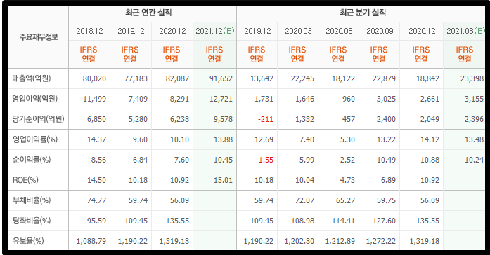 게다가 2021년 1분기 실적이 역대 최고로 나오면서 2021년 출발을 아주 좋게 시작했는데요. 사실 매수적기라는 증권사 리포트는 크게 신경 안쓰셔도 됩니다. 증권사 리포트는 대부분 매수 의견을 내놓기 때문에.. 근데 일단 올해 1분기 실적이 잘나온건 팩트입니다.