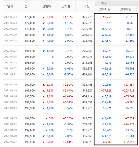 보시면 수급도 별로 좋지 않습니다. 특히 기관에서 미친듯이 매도를 때리고 있습니다. 아무래도 기관들은 예전부터 매수를 해놨었기 때문에 초특급 호재가 아니라면 굳이 매수하지는 않을 것 같습니다.