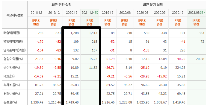 삼천리자전거가 최근에 좋은 상승이 계속 나와주고 있는 이유는 바로 코로나로 인한 배달 수요의 급증, 그리고 전기자전거 열풍으로 인한 매출 상승인데요. 보시면 2020년에 흑자전환에 성공하면서 ROE가 15%가 나오는 엄청난 실적을 달성했으며 2021년에는 매출과 순이익이 더 늘어날 예정입니다.
