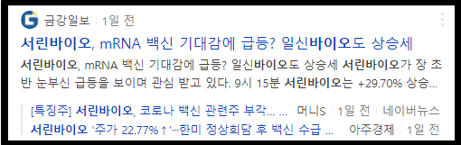 자 하여튼 오늘 소개해드릴 종목은 바로 서린바이오 입니다. 코로나백신 관련주로 상당히 힘있는 종목 ! 바로 시작해볼까요?
