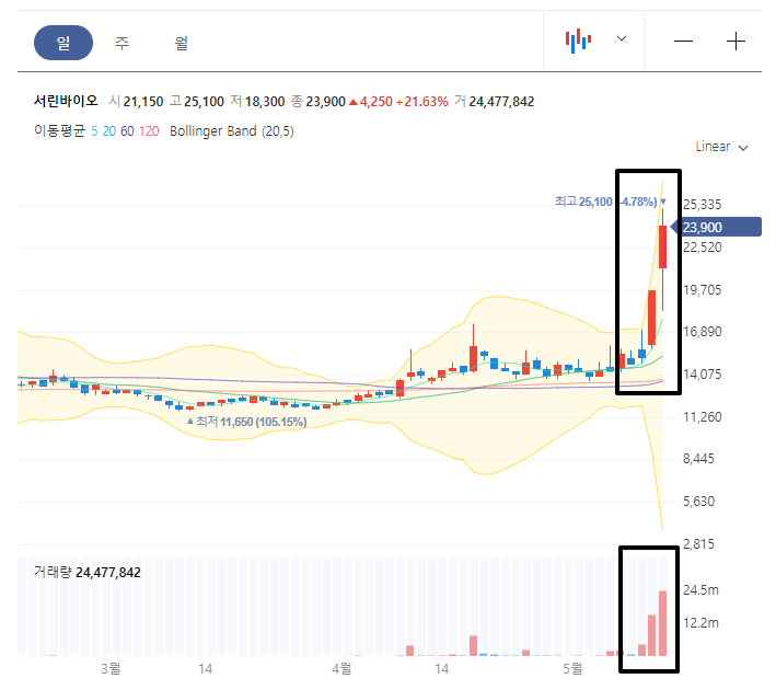 개인적으로 서린바이오 같은 코로나 관련 급등주는 어느정도 관망만 하거나 좀 더 지켜본 뒤에 다시 매수하는게 가장 좋은 방법입니다.