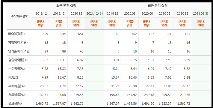 현금흐름도 이 정도면 상당히 양호하다고 볼 수 있겠습니다. 바이오 + 코스닥 조합이면서 , 코로나 테마주로 엮여있는 기업중에서는 실적이나 재무가 충분히 순위권에 든다고 보여집니다.