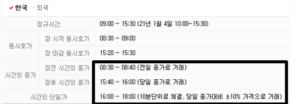 주식 정규장 시간은 09:00 ~ 15: 30이지만 정규장 이외에도 주식을 거래 할 수 있는 방법이 있습니다.