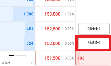 여기서 나무의 좋은 점은 오른쪽 체결상세 버튼을 누르면 이렇게 10분 간격으로 얼마에 체결되었고, 어느 정도의 물량이 체결되었는지 상세하게 나옵니다. 이걸보고 단일가 가격이 상승추세인지, 하락추세인지 확인 할 수 있습니다.