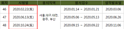 왼쪽이 2020년에 치뤄진 신용분석사 시험일정,