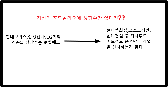 예를 들면 LG화학의 일부를 덜어내고 현대백화점,포스코강판 같은 종목으로 옮기는 작업을 진행했는데 다행히 수익률 방어가 되었습니다.