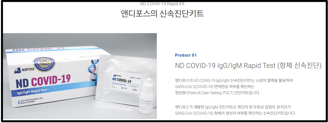 하지만 앤디포스가 사람들에게 알려진건 다름아닌 코로나 진단키트 개발 때문입니다. 오히려 본 사업인 양면 테이프나 윈도우 필름 사업보다 코로나 진단키트 사업으로 주목받아 주가가 치솟았었죠.