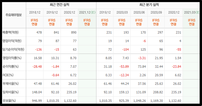 매출이 2019년과 2020년에 나름 증가하는 모습을 보여주긴 했지만 영업이익률이 계속 내려가고 있으며 사실 흑자전환을 했다고 해도 재무와 실적자체가 좋은 기업은 아닙니다. 더군다나 백신이 현재 전세계적으로 공급되고 있기 때문에 진단키트의 필요성도 많이 덜해졌구요.