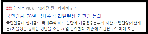 연기금이 드디어 국내주식 비중 리밸런싱을 개편할 가능성이 생겼습니다. 현재 코스피의 주가가 지지부진한 이유는 여러가지가 있지만 연기금의 매도세도 한몫하죠.