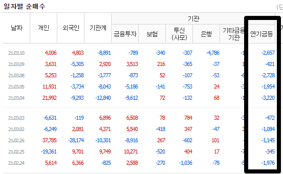 그나저나 제가 포스팅했던 GS건설을 연기금이 상당히 많이 매수했네요. 대체적으로 3월달에는 연기금이 가치주, 경기민감주를 많이 매수했습니다.