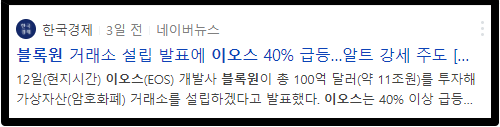 게다가 최근에 이오스의 상승에 연료를 더 불어넣는 소식이 나왔습니다. 바로 이오스의 모회사 블록원이 거래소를 설립할거라는 뉴스였는데요. 블록원이 무려 11조원을 투자해서 가상화폐 거래소를 설립하겠다고 한것이죠.