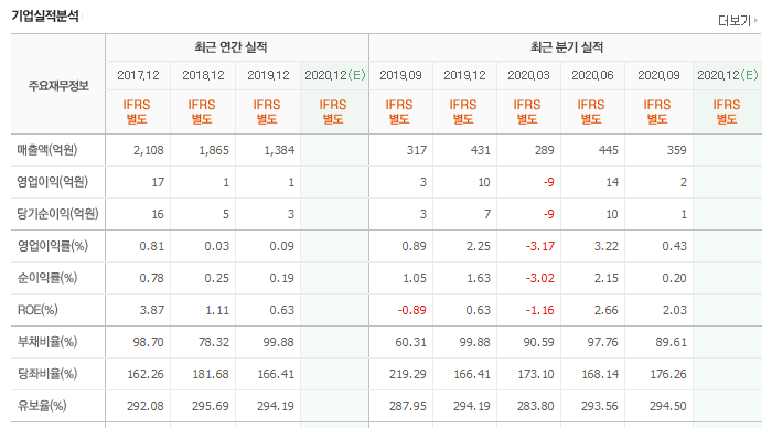 이화공영의 실적분석 표 입니다. 여타 중, 소형 건설주가 그렇듯이 코로나 때문에 2020년도 실적이 좋지는 않습니다. 워낙 직격탄을 맞은 기업이기도 하기 때문에 2020년 실적은 크게 중요하지 않을 것 같습니다. 다만 이화공영은 2018,2019년도 실적도 크게 좋은 편은 아니기에 안정성 면에서는 살짝 떨어집니다.