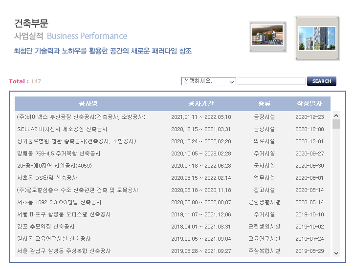 홈페이지에 건축부문 실적이 계속 올라오고 있습니다. 저는 항상 그 주식을 볼때 기업의 홈페이지를 무조건 방문해보는 편입니다. 홈페이지 관리가 개판이고 신경을 전혀 안쓰는 것 같은 기업은 바로 거릅니다.
