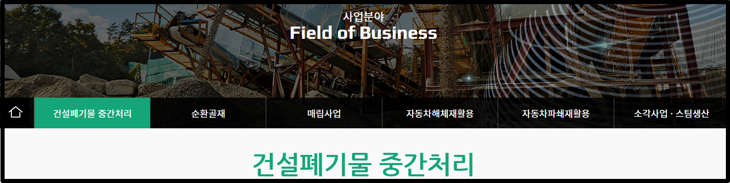 비계구조물 해체에서부터 건설폐기물의 수집/운반 및 중간처리, 순환골재 생산, 폐기물의 최종처분까지 국내 유일 폐기물 일괄처리 기술 및 특허 보유를 바탕으로 자동차 재활용 사업에 까지 진출했죠.