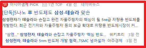 삼성전자는 5나노 차량용 반도체를 개발하고 테슬라에 공급하는 계약을 체결 했습니다. 사실상 이거는 장기적으로 봤을때 엄청난 호재입니다. 게다가 테슬라 뿐만 아니라 지금 전세계 자동차 시장에서 삼성전자나 TSMC 의 자동차용 반도체를 원하고 있기 때문에..