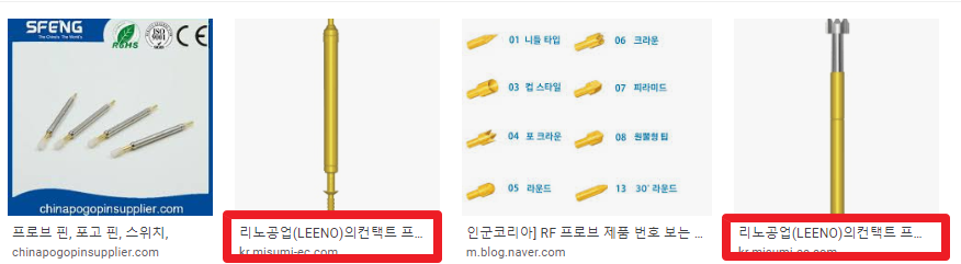 구글 이미지 검색에 프로브핀만 쳐도 바로 리노공업 제품이 상단에 위치하고 있습니다.