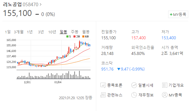 항상 탄탄한 회사에 투자해야하고, 솔직히 펀더멘탈 측면에서 리노공업은 흠잡을곳이 없네요.