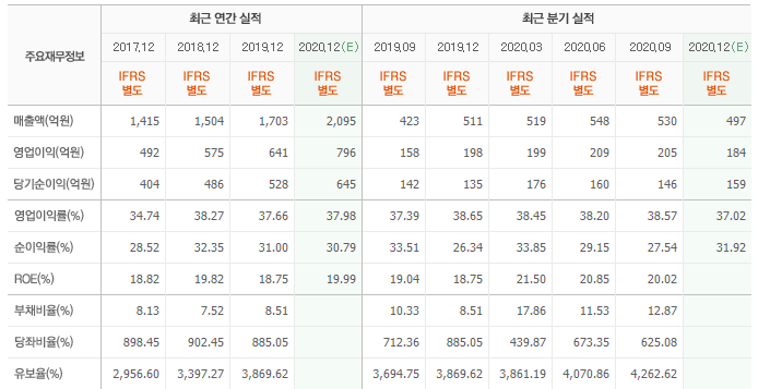 실적도 아주 탄탄하고, 매출도 꾸준히 잘나와주는 회사입니다. 유보율이 낮은게 아쉽지만 괜찮습니다. 이미 영업이익이 2018도에 비해 1500억원이나 증가했습니다.