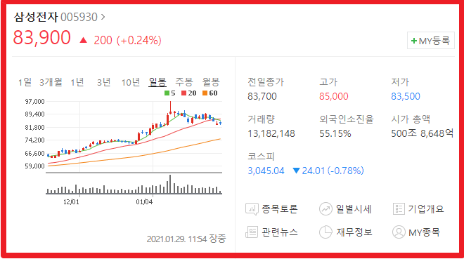 삼성전자는 명확히 말씀드리지만 8만원 초반대, 아니면 7만원 후반대까지도 내려오면 무조건 매수입니다.
