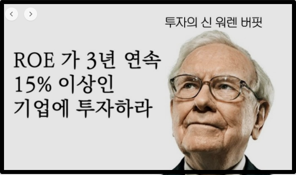 오마하의 현인 '워렌버핏' 도 ROE가 꾸준히 잘 나오는 기업을 선택해서 투자하라고 했을 정도로 상당히 중요한 지표입니다. 특히 저는 단기 투자 종목보다 2년 이상 장투를 계획하고 있는 종목을 선택할때 꼭 필요한 지표라고 생각하네요.