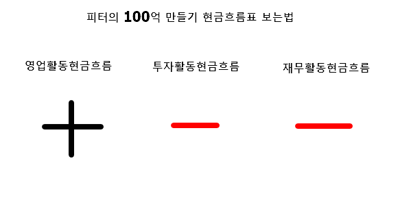 영업활동현금흐름 + 투자활동현금흐름 - 재무활동현금흐름 - 상태인게 가장 좋은 현금흐름표 입니다. 왜냐면 영업활동으로 인해 당연히 돈을 벌어야 하니까 흑자여야 하고,