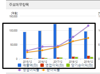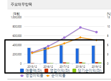 하지만 이렇게 매출액이 들쑥날쑥하면서 딱히 떨어지지는 않지만 수년간 비슷한 매출을 올리는 기업들도 있습니다. 보통 이런 기업들이 올라가려면 실적외의 또 다른 상승 모멘텀이 붙어야 올라갈 수 있습니다. 아니면 전년대비 매출과 영업이익, 순이익이 모두 큰 폭으로 증가한다거나..