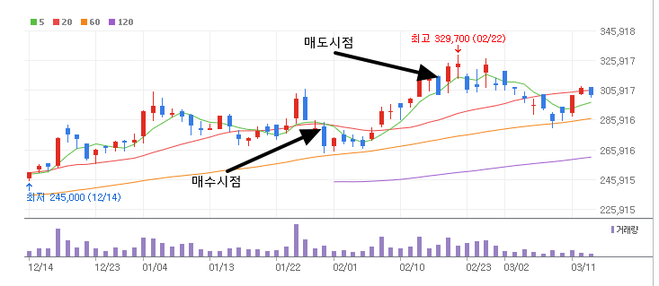 이때도 보시면 2월 15일에 포스팅을 올렸었는데요. 이미 저때도 수익권이었습니다. 하지만 솔브레인은 결국 제가 예상한대로 30만원을 넘어서 33만원 직전까지 가더라구요. 근데 거기까지 갈줄 알고 있었습니다. 저는 32만원에서 매도했습니다.