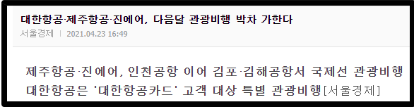최대한 백신 접종이 완료되는 국가부터 국제노선을 다시 제공할 예정이긴 한데 그게 언제가 될지가 미지수이며 솔직히 제 생각에는 아직도 멀었다고 봅니다. 저것도 사실상 여행용이 아닌 그냥 관광용 비행이라.. 매출에는 크게 도움이 안되겠죠.