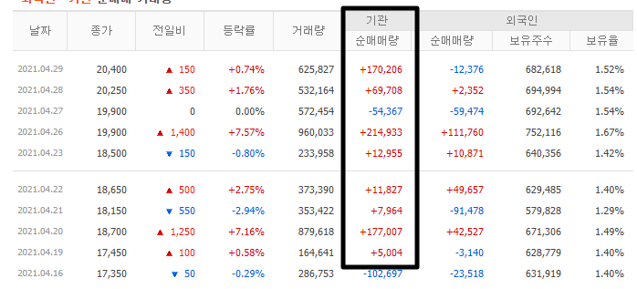 다만 수급적인 측면에서 최근에 기관의 순매수가 많이 들어왔다는 점을 생각해봤을때 지금부터 모아가는것도 나쁘진 않다고 봅니다.