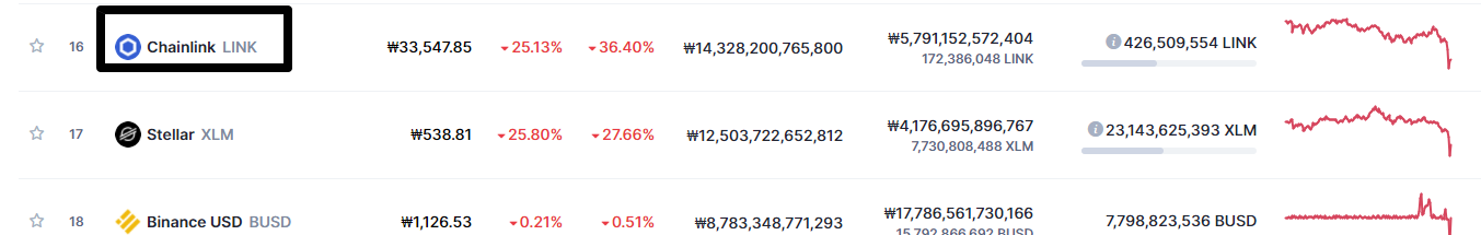 체인링크는 현재 시총 16위에 위치하고 있는 코인입니다. 코인베이스에도 상장이 되어있는 코인이며 메이저 코인으로 분류되고 있는 코인이죠. 발행량은 총 10억개입니다 현재 유통량은 3억 5천만개입니다.